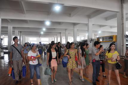 学员参观床垫生产工艺流程